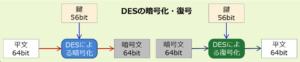 DES(Data Encryption Standard) 1997年 U.S. 連邦情報処理標準規格(FIPS)に採用された対称暗号(symmetric cryptography: 暗号化と復号で同じ鍵を使う方式 ) DESは64bitの平文を64bitの暗号文にする対象暗号アルゴリズム